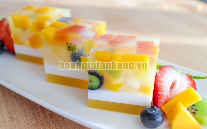 Thạch rau câu dai giòn mát lạnh với đa dạng màu sắc đẹp mắt cũng là một sự lựa chọn lý tưởng dành cho bữa tiệc sinh nhật. Đặc biệt, bố mẹ có thể tự tay làm thạch rau câu và để thêm các loại trái cây chua ngọt khác nhau để tăng thêm hương vị cho món ăn.